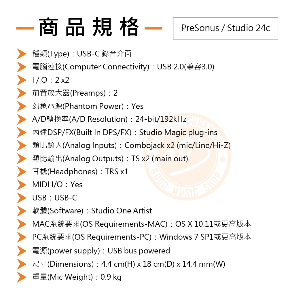 ◆ 附Studio One Artist正版軟體、6GB+的Plugin(包括Lexicon和Arturia等)