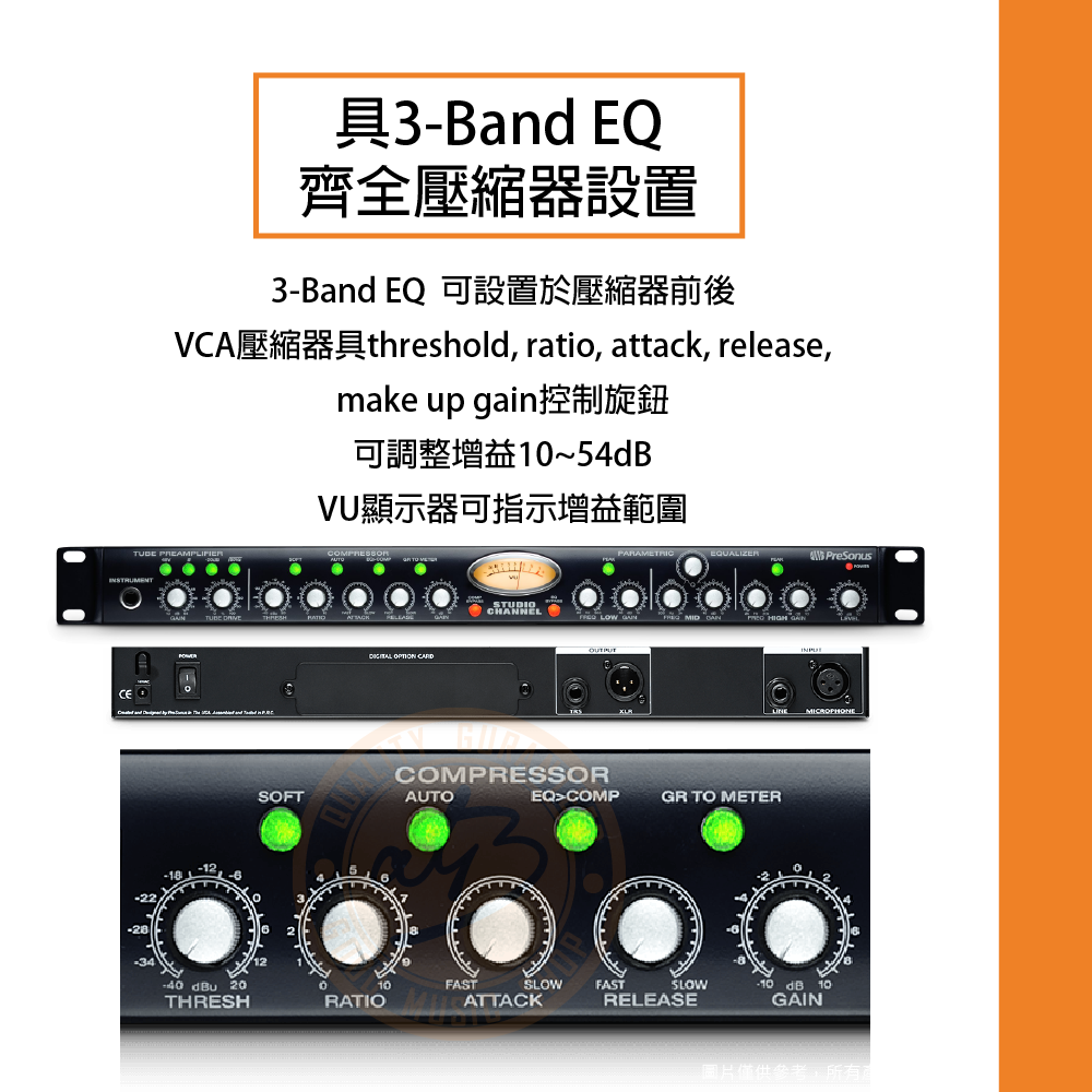 ◆ 具3-Band EQ、可調增益,齊全壓縮器設置