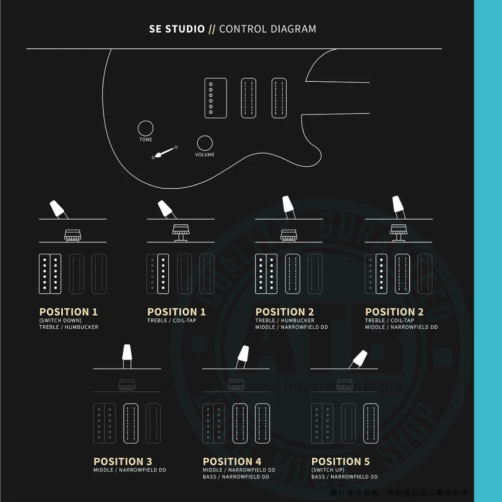 ◆HHH 三 Humbucker 配置,全段切單音色彈性極高