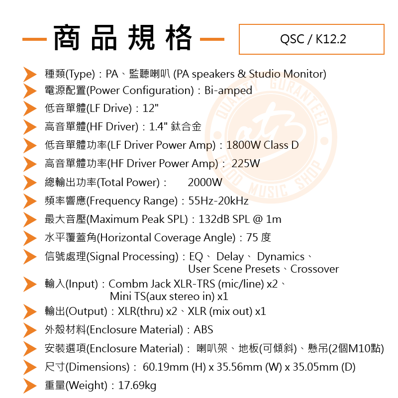 ◆1.4吋鈦金屬高音單體、12吋低音單體