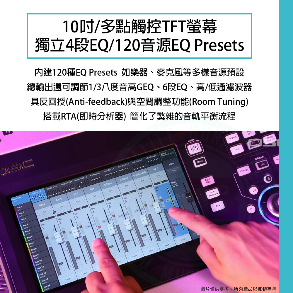 ◆ 10吋多點觸控TFT螢幕、獨立4段EQ、120音源EQ Presets
