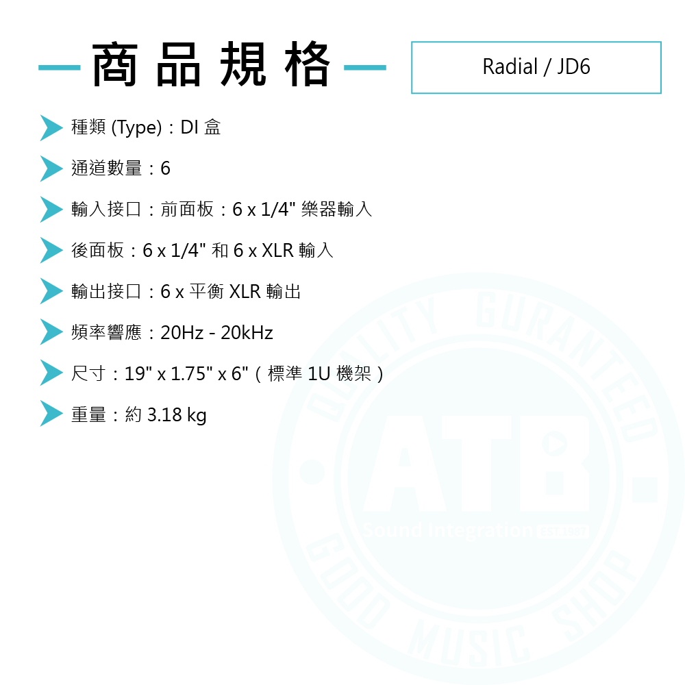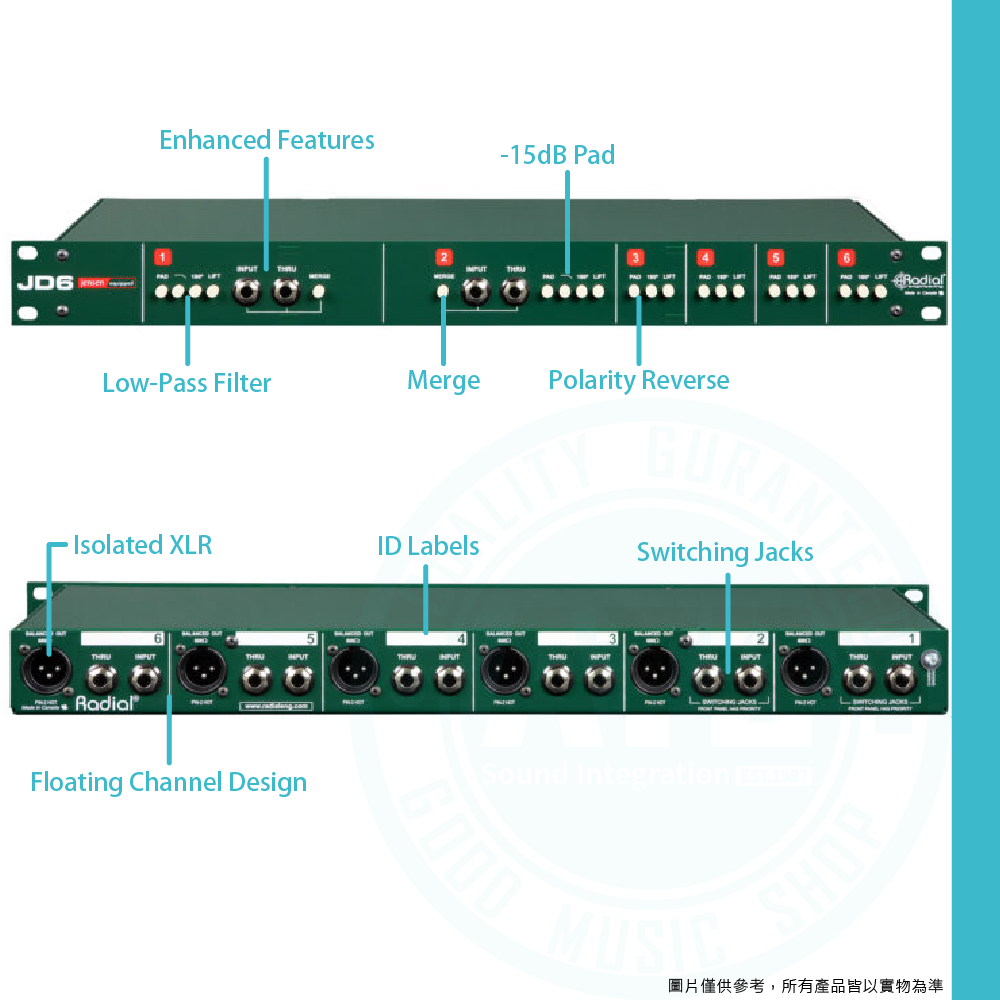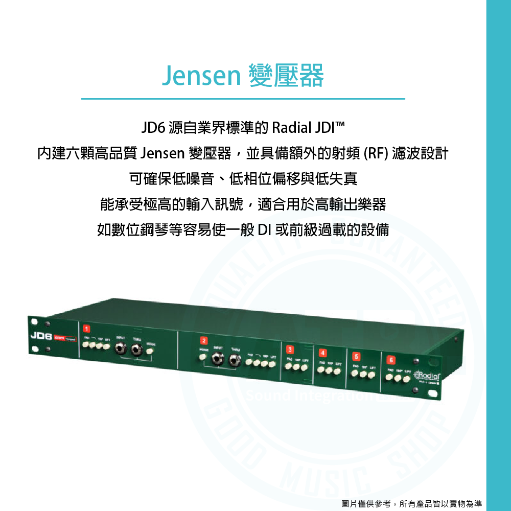 ◆六個獨立通道,每個通道都採用 Jensen 變壓器