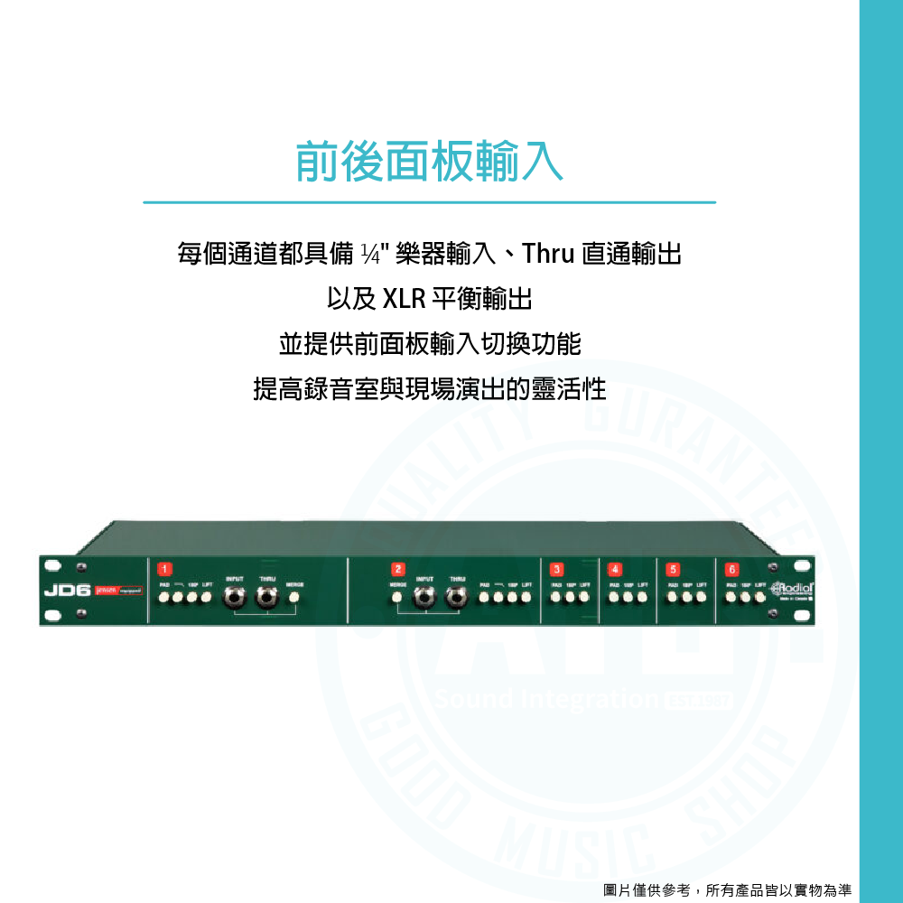 ◆前面板提供 1/4" 樂器輸入;後面板則配備 1/4" 和 XLR 輸入