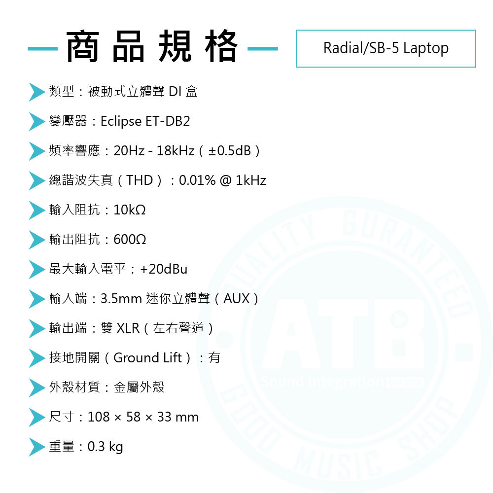 ◆專為筆電、平板、手機設計的被動式 DI 盒