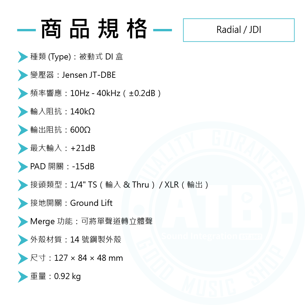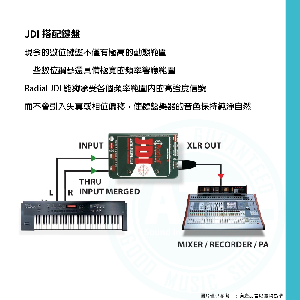 ◆適用於鍵盤、吉他和貝斯的優質被動式D.I
