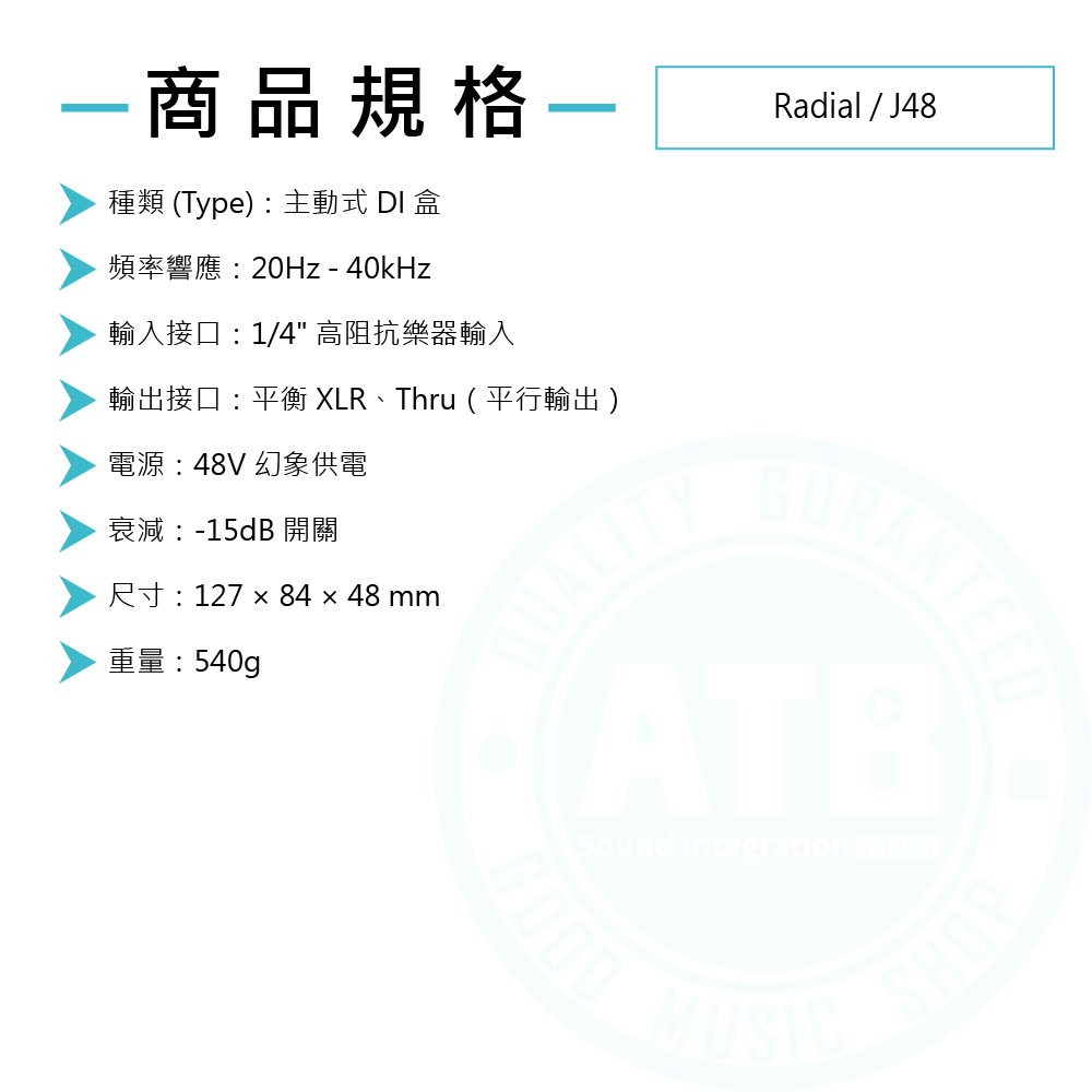 ◆錄音室等級的優質主動式DI Box