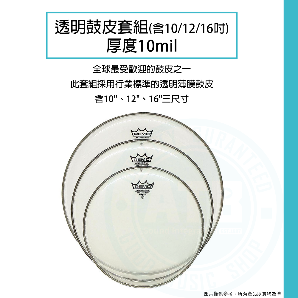 ◆ 透明鼓皮套組,含10、12、16吋