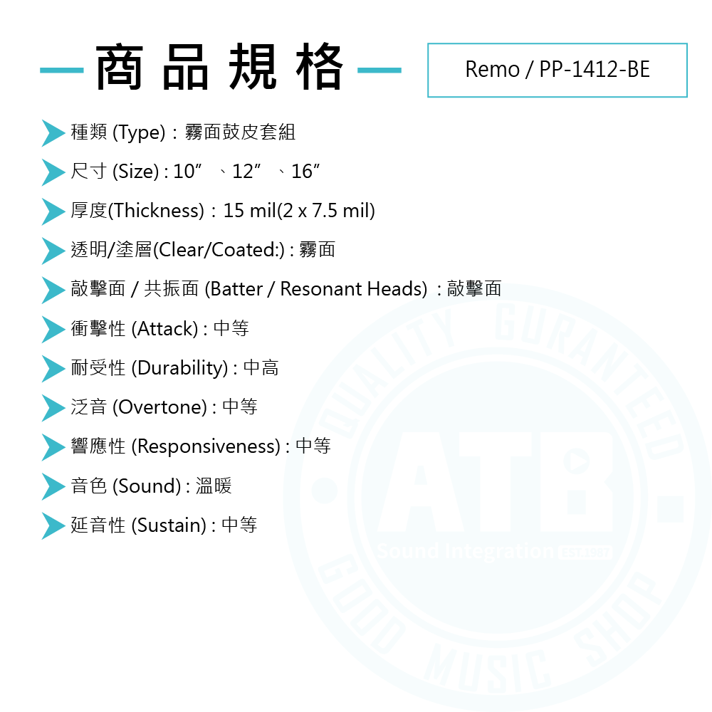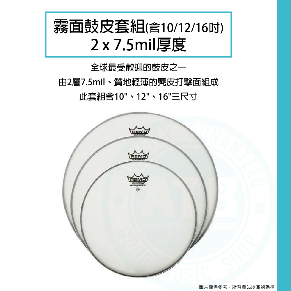 ◆ 霧面鼓皮套組,含10、12、16吋