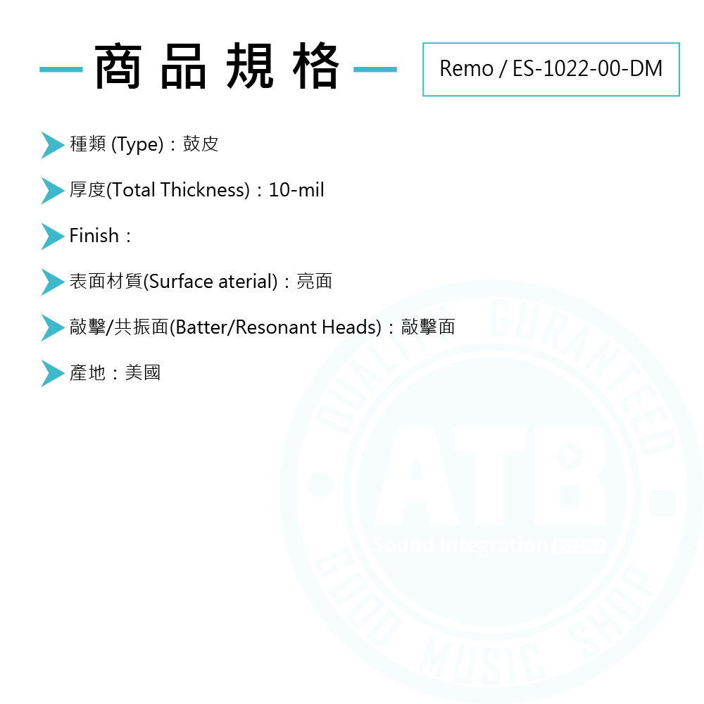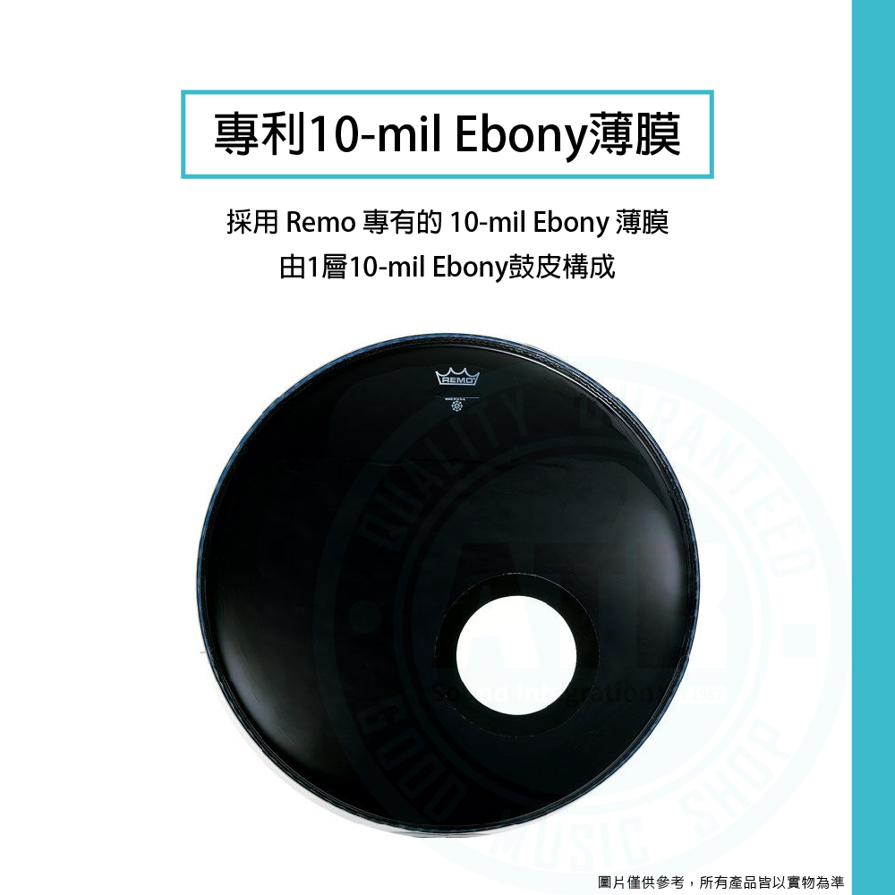 ◆由1層10-mil Ebony鼓皮構成