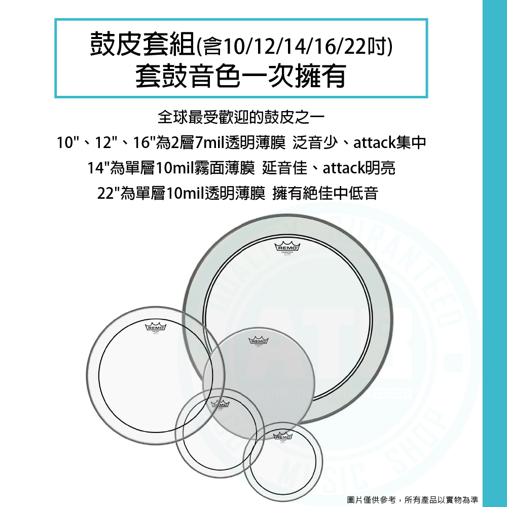 ◆ 全球最受歡迎的鼓皮之一 - Remo鼓皮套組