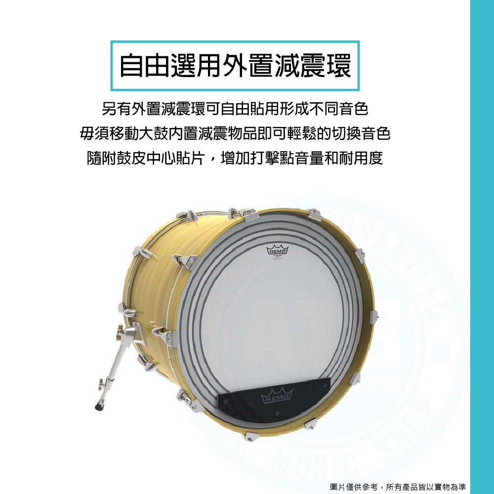 ◆ 另有外置減震環可自由貼用形成不同音色,毋須移動大鼓內置減震物品即可輕鬆的切換音色