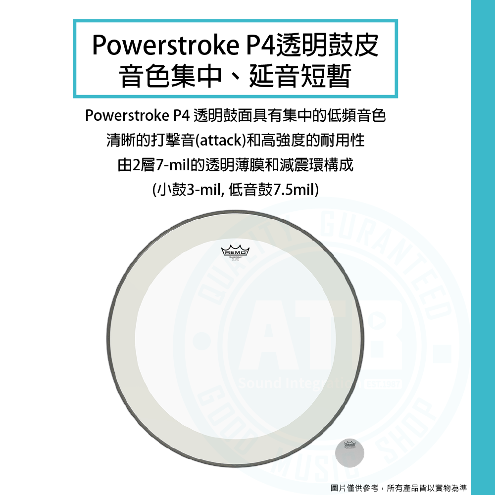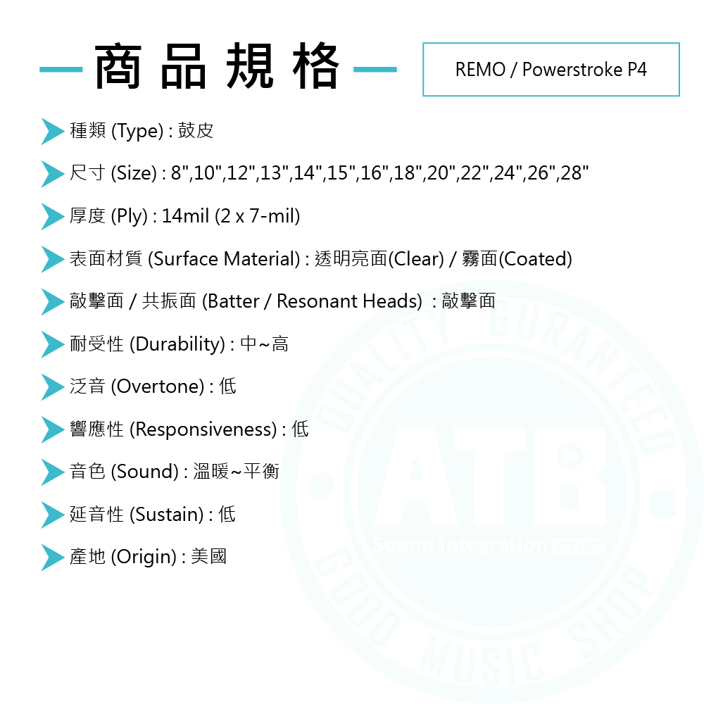 ◆ 由2層7-mil的薄膜和減震環構成(小鼓3-mil, 低音鼓7.5mil)