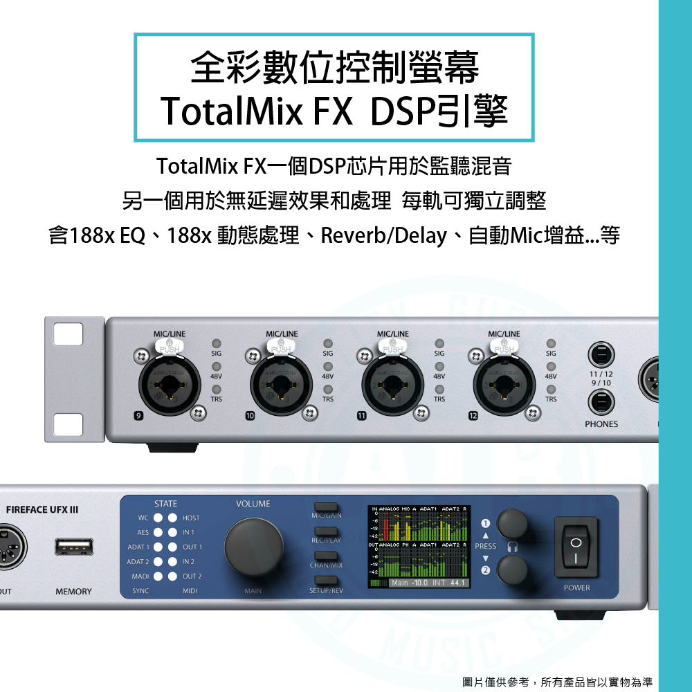 ◆全彩數位控制螢幕,內建TotalMix FX DSP引擎