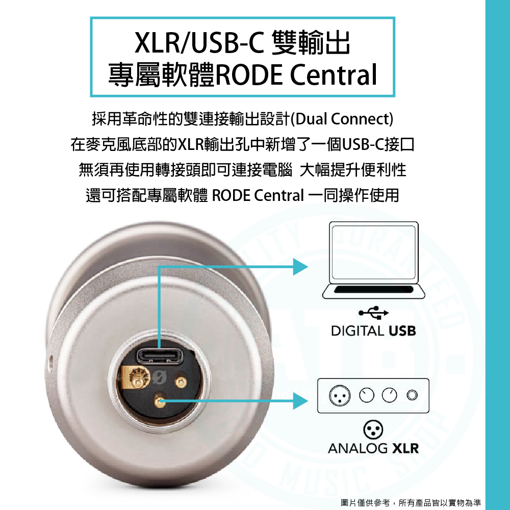 ◆ XLR/USB-C雙輸出設計,可搭配專屬軟體RODE Central使用