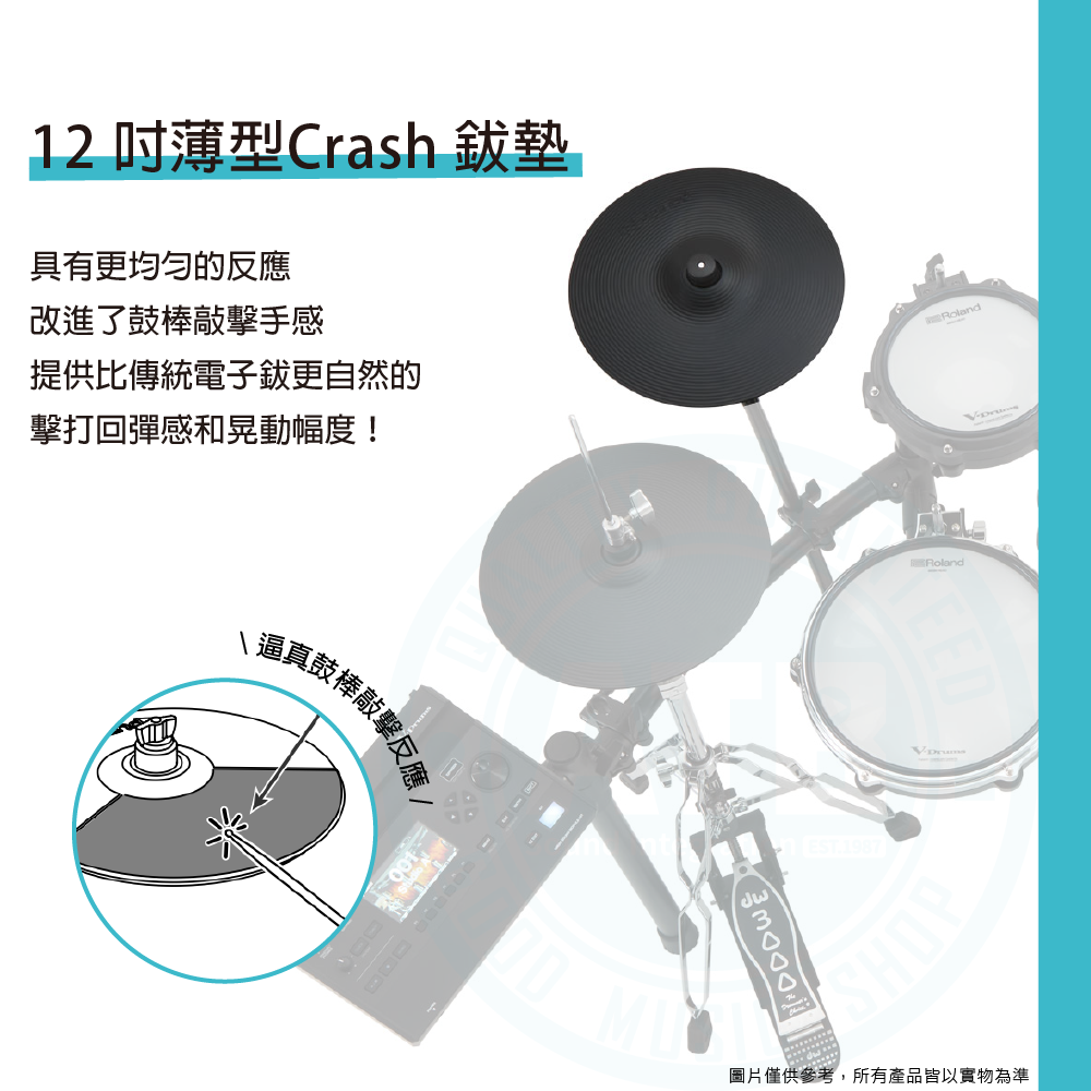 ◆先進的12 吋crash 鈸打擊板,比前代厚度更薄