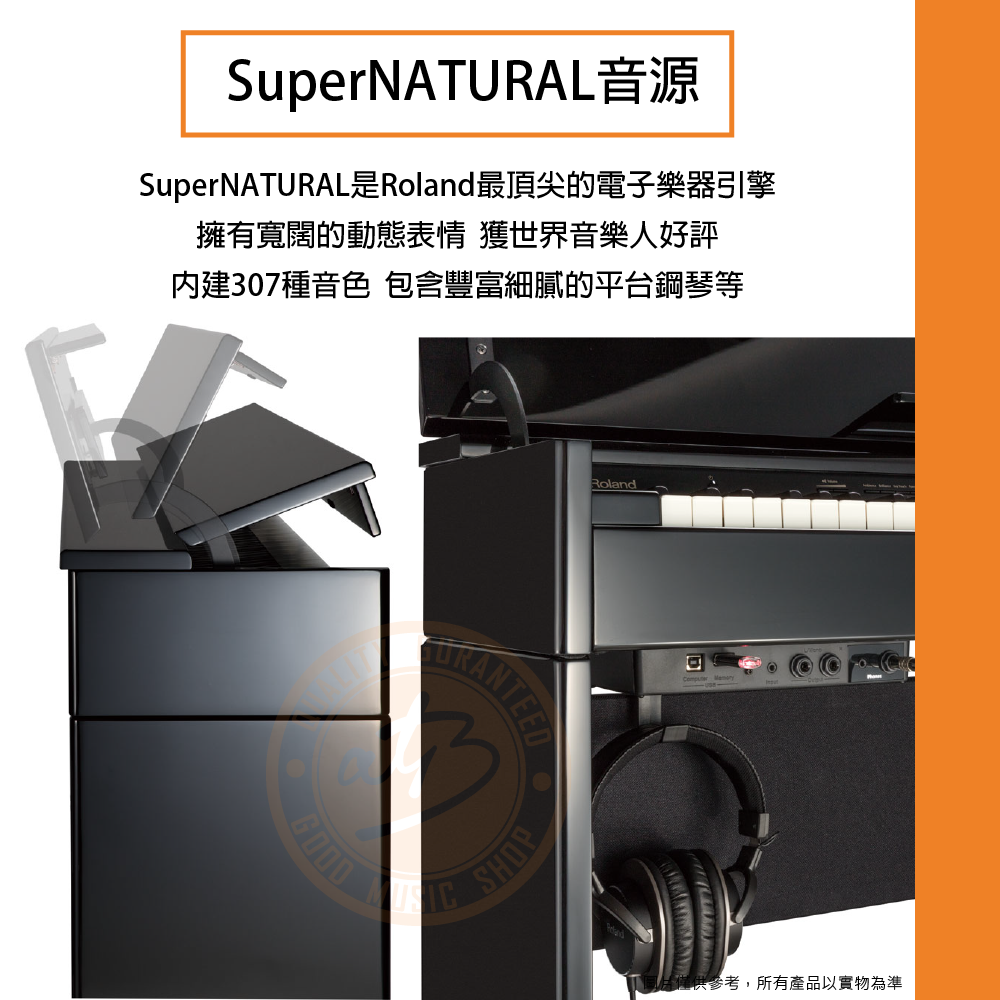 ◆ SuperNATURAL是Roland最頂尖的電子樂器引擎,擁有寬闊的動態表情,內建307種音色
