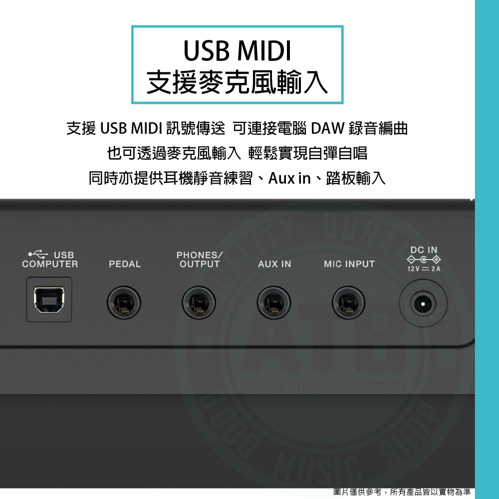 ◆ USB MIDI,支援麥克風輸入、耳機靜音練習