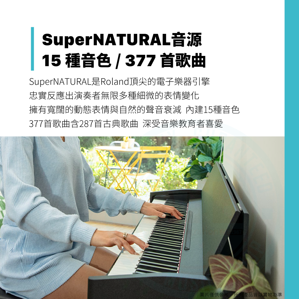 ◆ 採用SuperNATURAL頂尖Roland音源,15種音色、377首歌曲