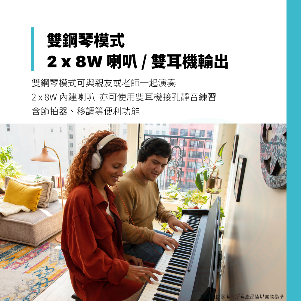◆ 雙鋼琴模式 2 x 8W喇叭、雙耳機輸出