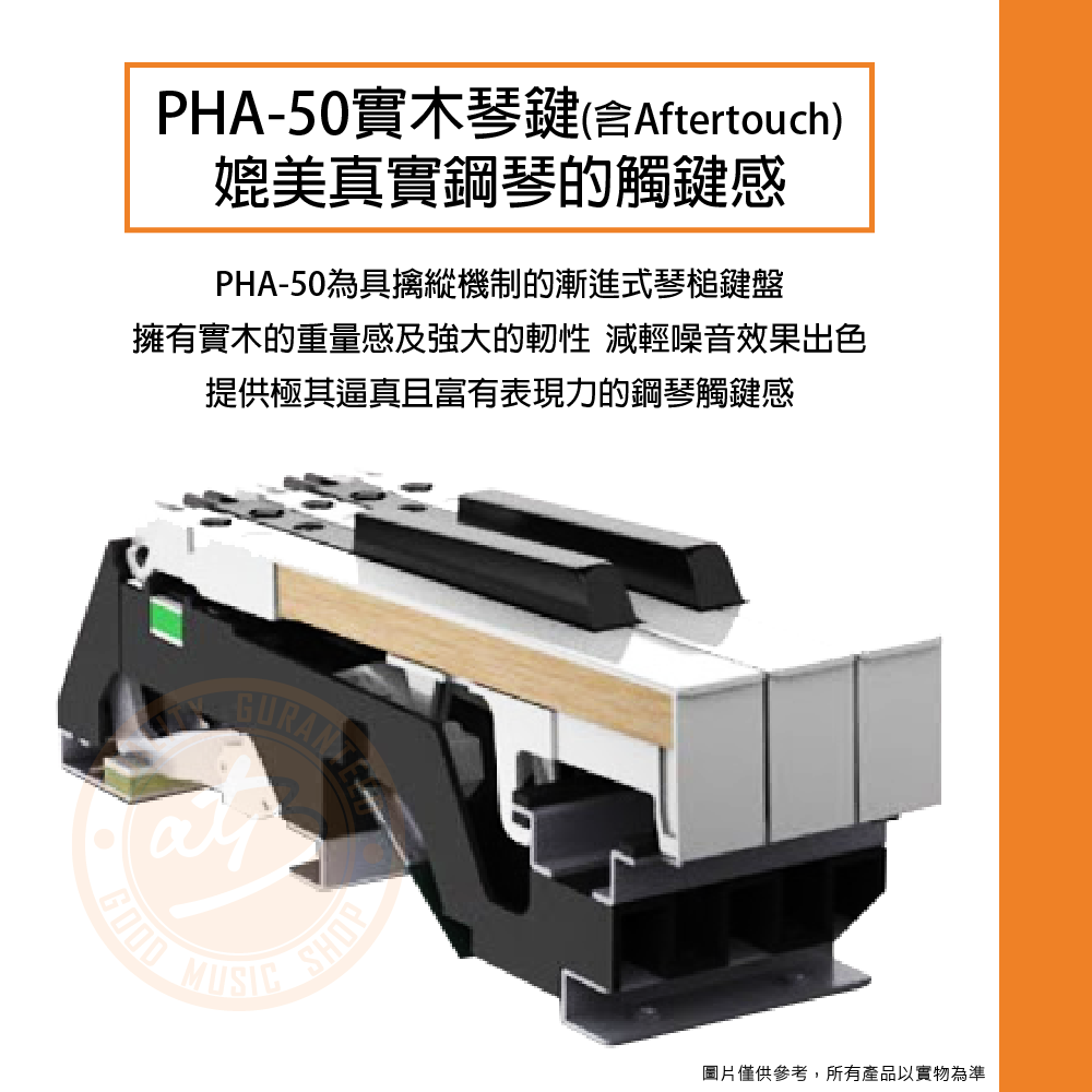 ◆ PHA-50漸進式琴槌鍵盤具擒縱機制,帶來逼真平台鋼琴觸鍵感
