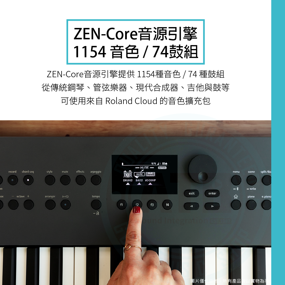 ◆ 搭載ZEN-Core音源引擎,提供1154種音色、74種鼓組