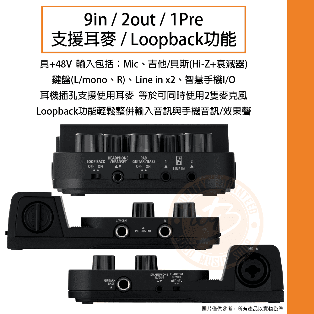 ◆ 9in / 2out / 1Pre,支援耳麥、Loopback功能