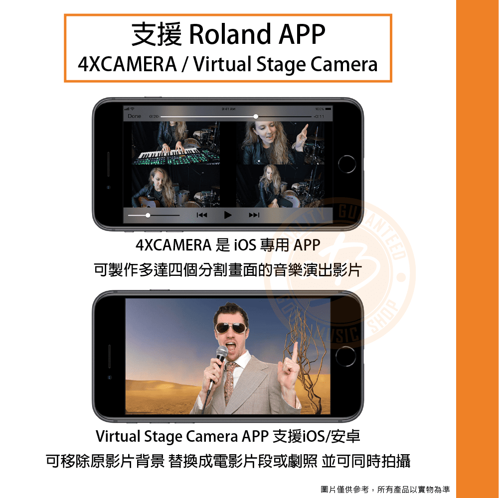 ◆ 支援 Roland APP:4XCAMERA及Virtual Stage Camera