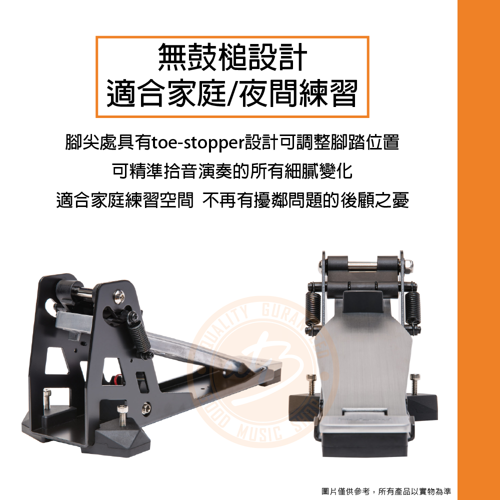 ◆ 無鼓槌設計,為夜間練習而設計的超極靜運作機制
