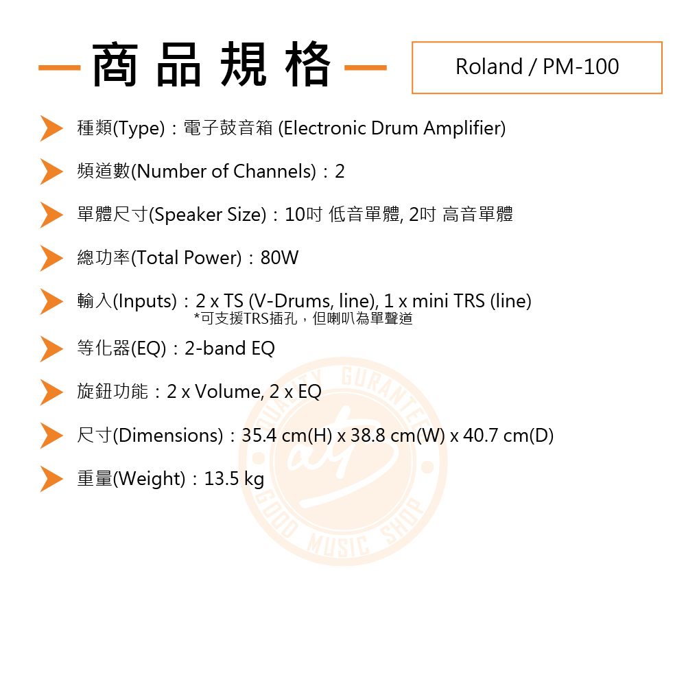 ◆ 80W電子鼓音箱,搭載10吋低音單體