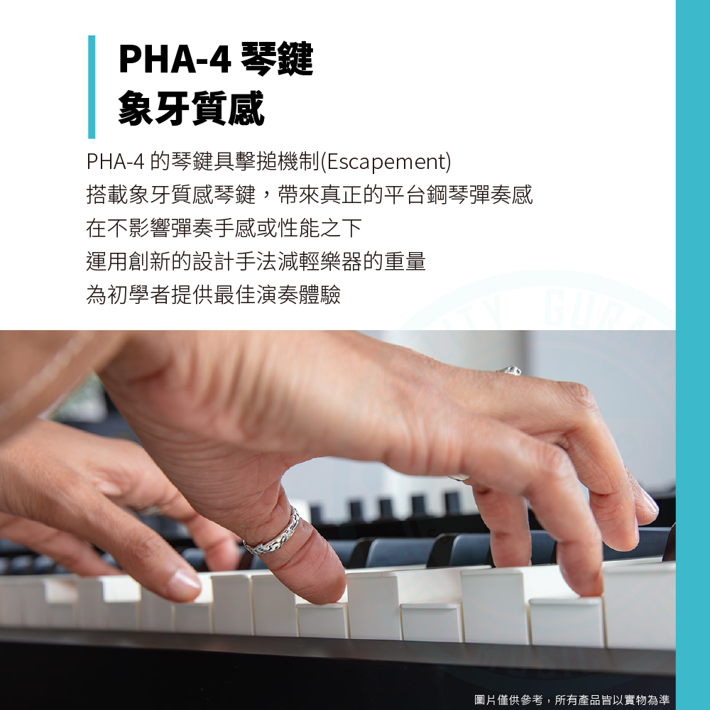 ◆ 88 鍵PHA-4象牙質感琴鍵搭載擊搥機制