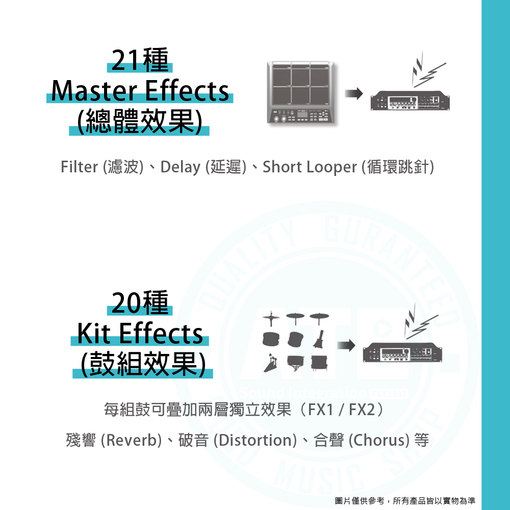 ◆內建100個鼓組、8個鼓組列,並配備三個多重效果器
