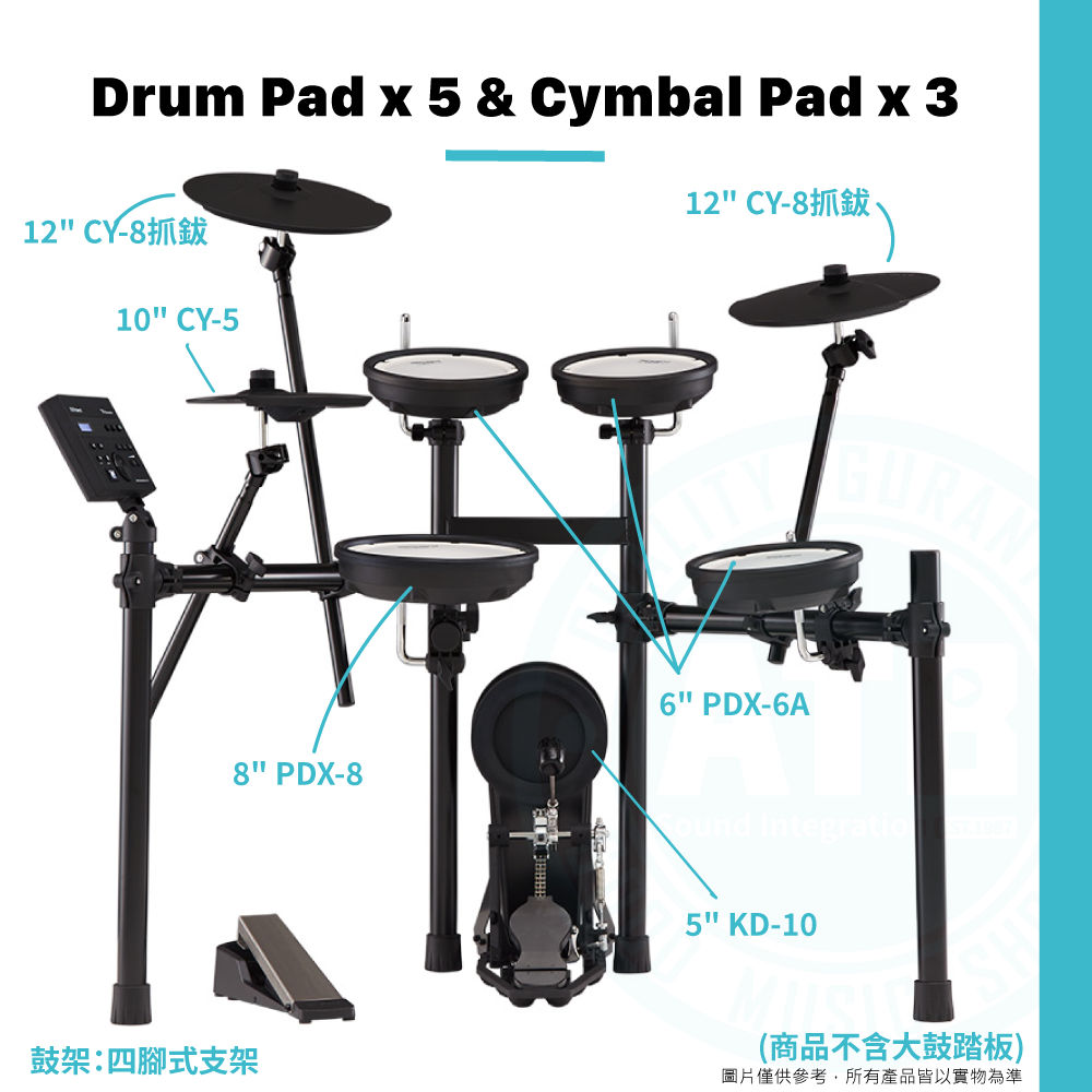 ◆ 配置:Drum Pad x5、Cymbal Pad x3