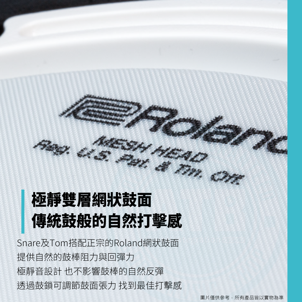 ◆ Snare及Tom使用極靜雙層網狀鼓面,擁有傳統鼓般的自然打擊感