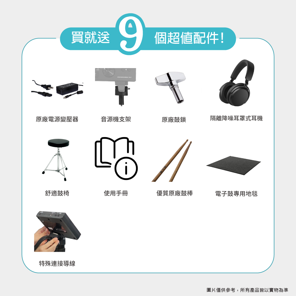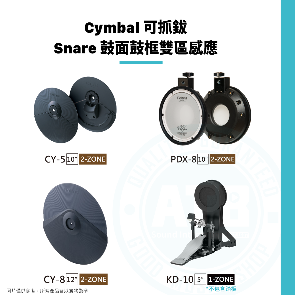 ◆ Cymbal可抓鈸,Snare鼓面鼓框雙區感應,大鼓升級5吋Pad