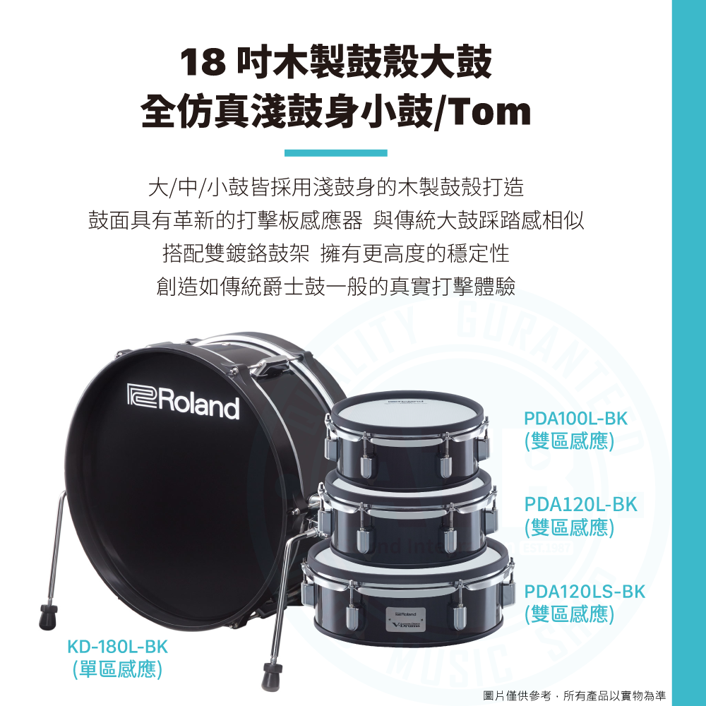 ◆ 採用18吋木製鼓殼大鼓、全仿真淺鼓身小鼓/Tom