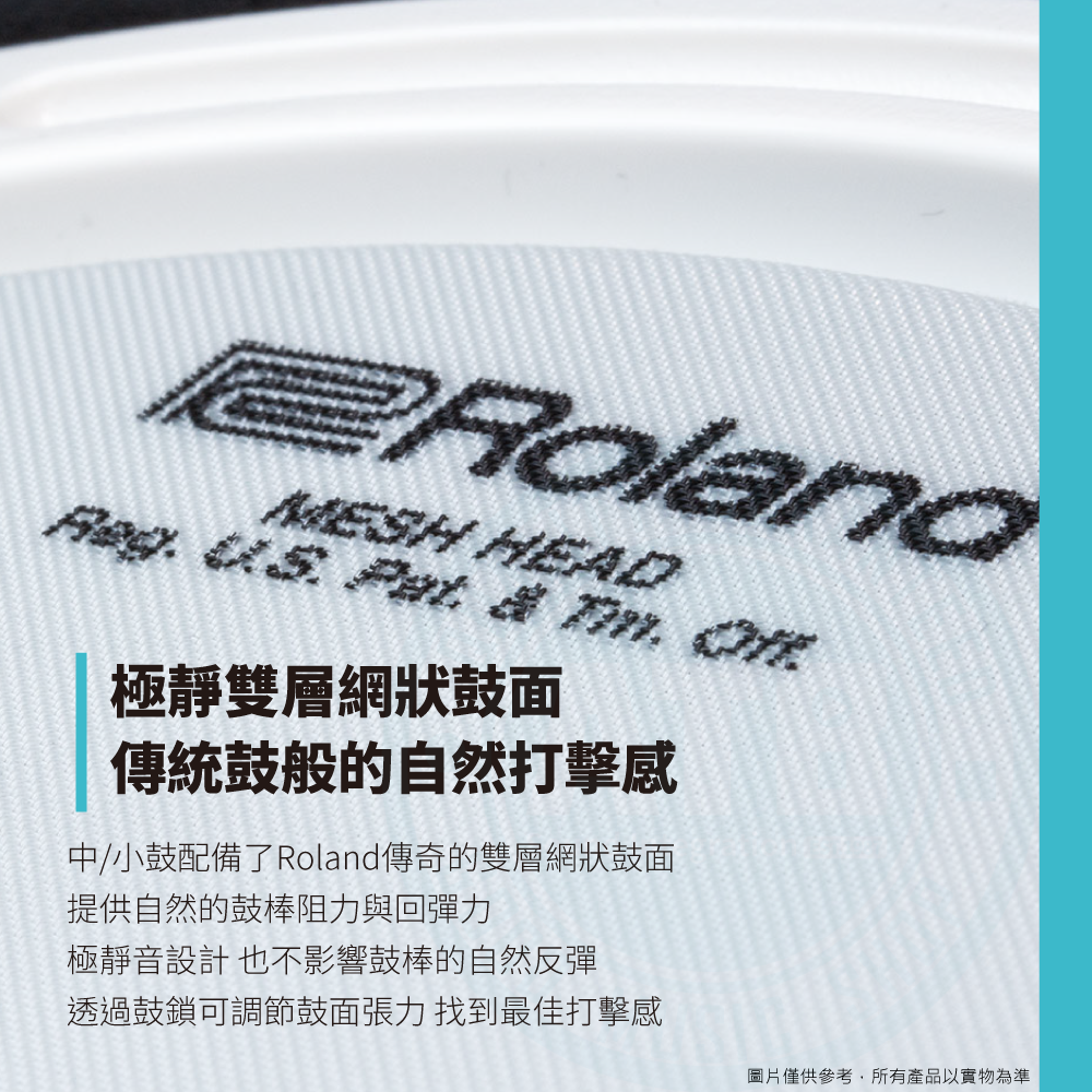 ◆ Snare/Tom使用極靜音雙層網狀鼓面,擁有真實打擊回彈感