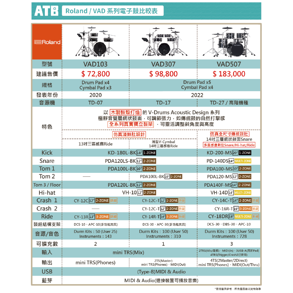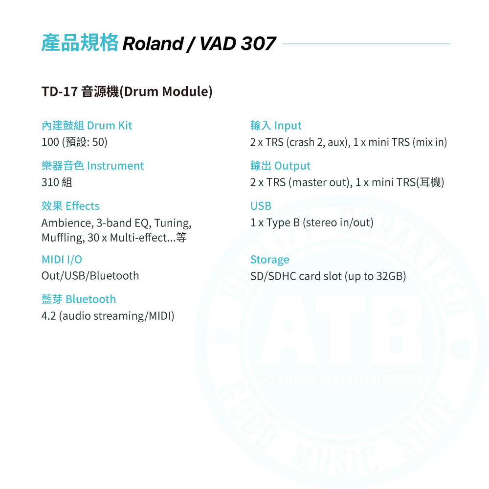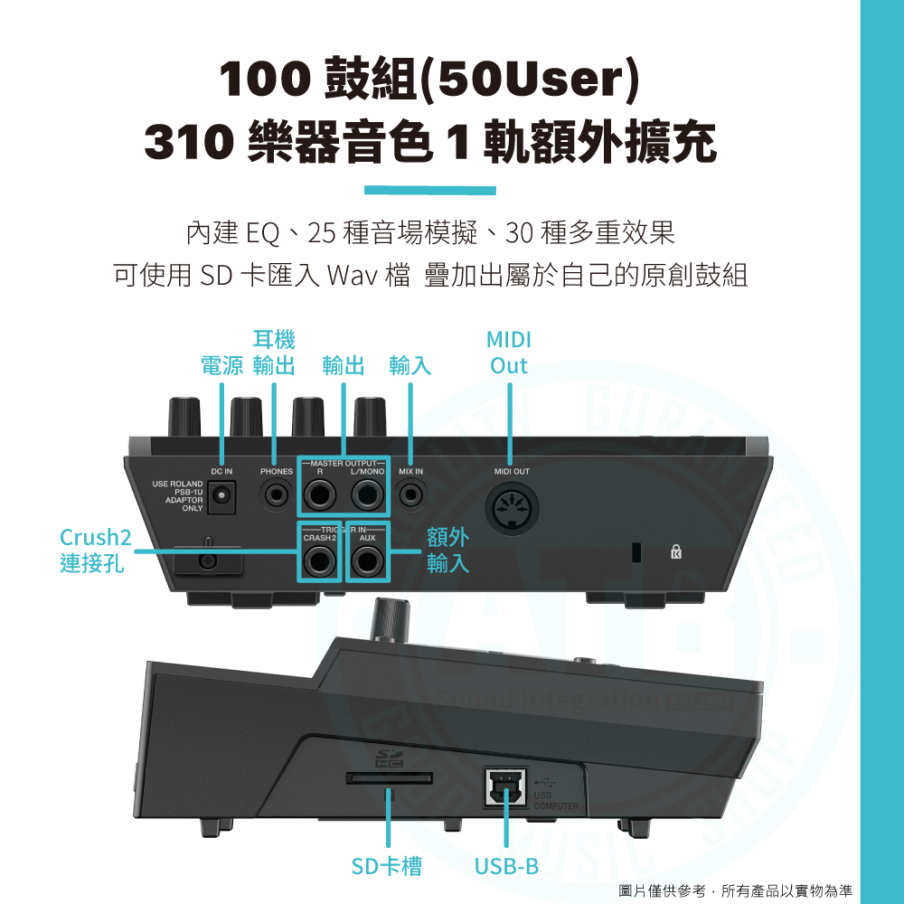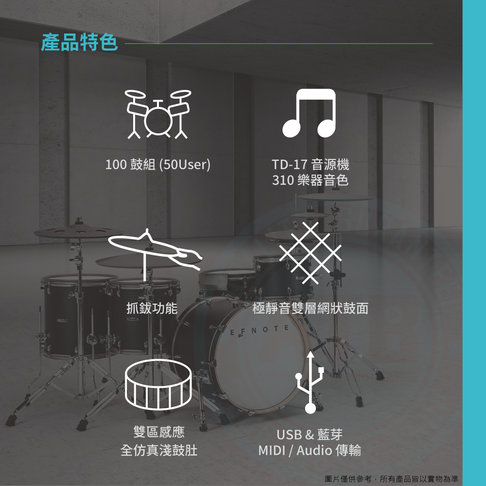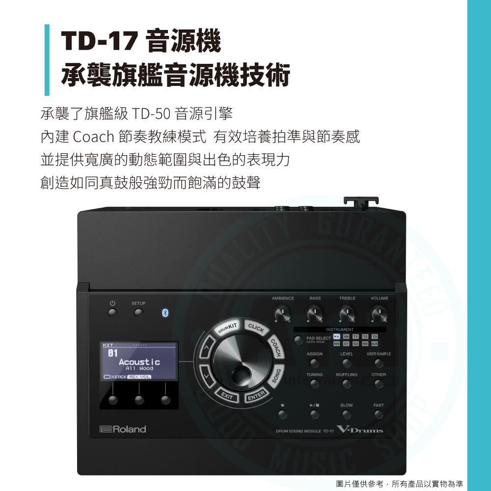 ◆ 搭載TD-17音源機,內建鼓組x100、樂器音色x310