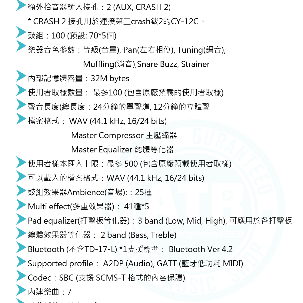 ◆ TD-17 旗艦音源,音色逼真表現力強