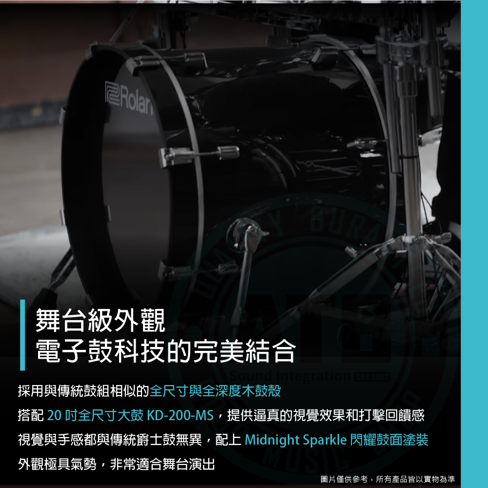 ◆採用全深度木鼓殼與 20 吋傳統大鼓,提供逼真外觀與紮實腳感
