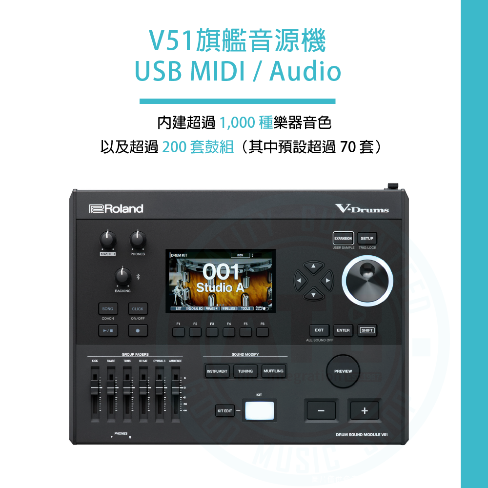 ◆搭載V51音源機,內建鼓組x200、1000+樂器音色