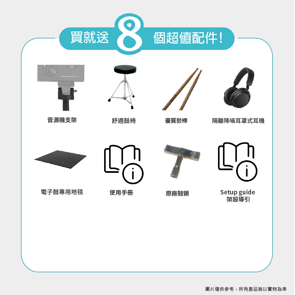 ◆Snare/Tom使用極靜音雙層網狀鼓面,擁有真實打擊回彈感