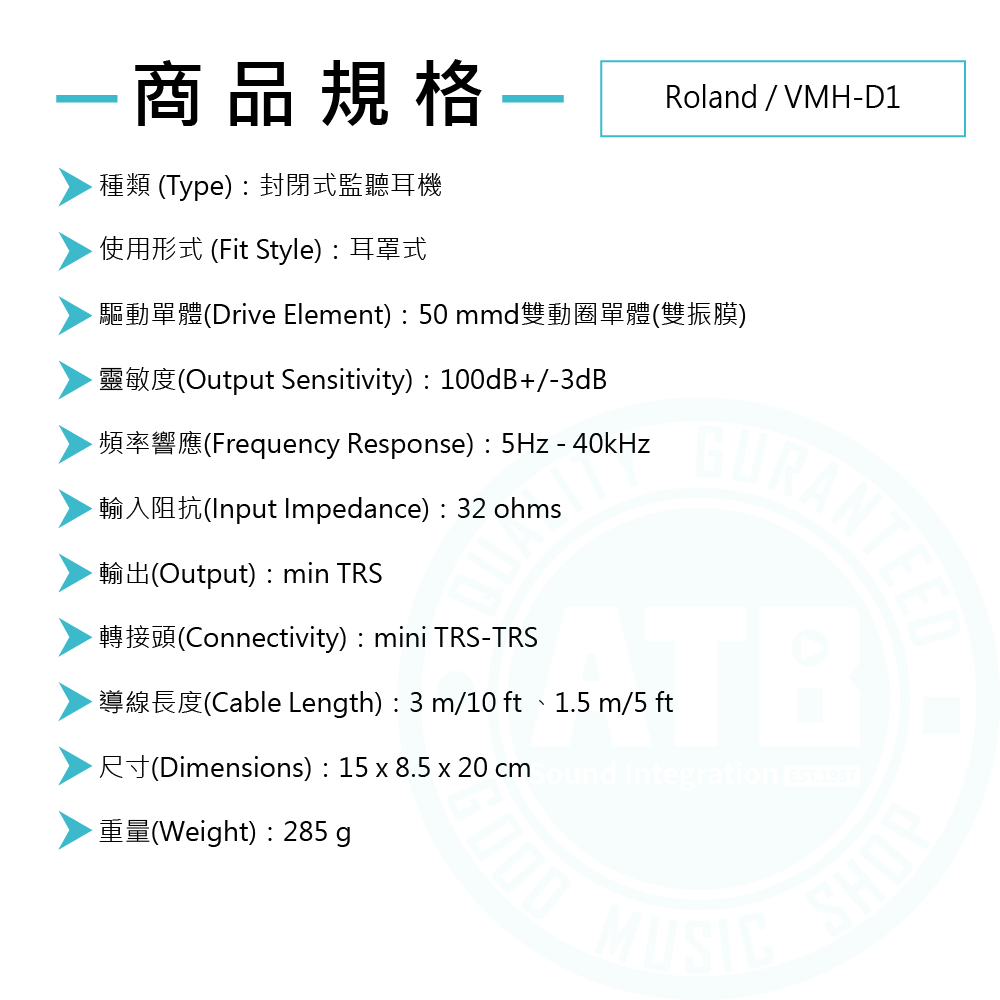 ◆電子鼓專用,封閉式監聽耳機(32 ohms)