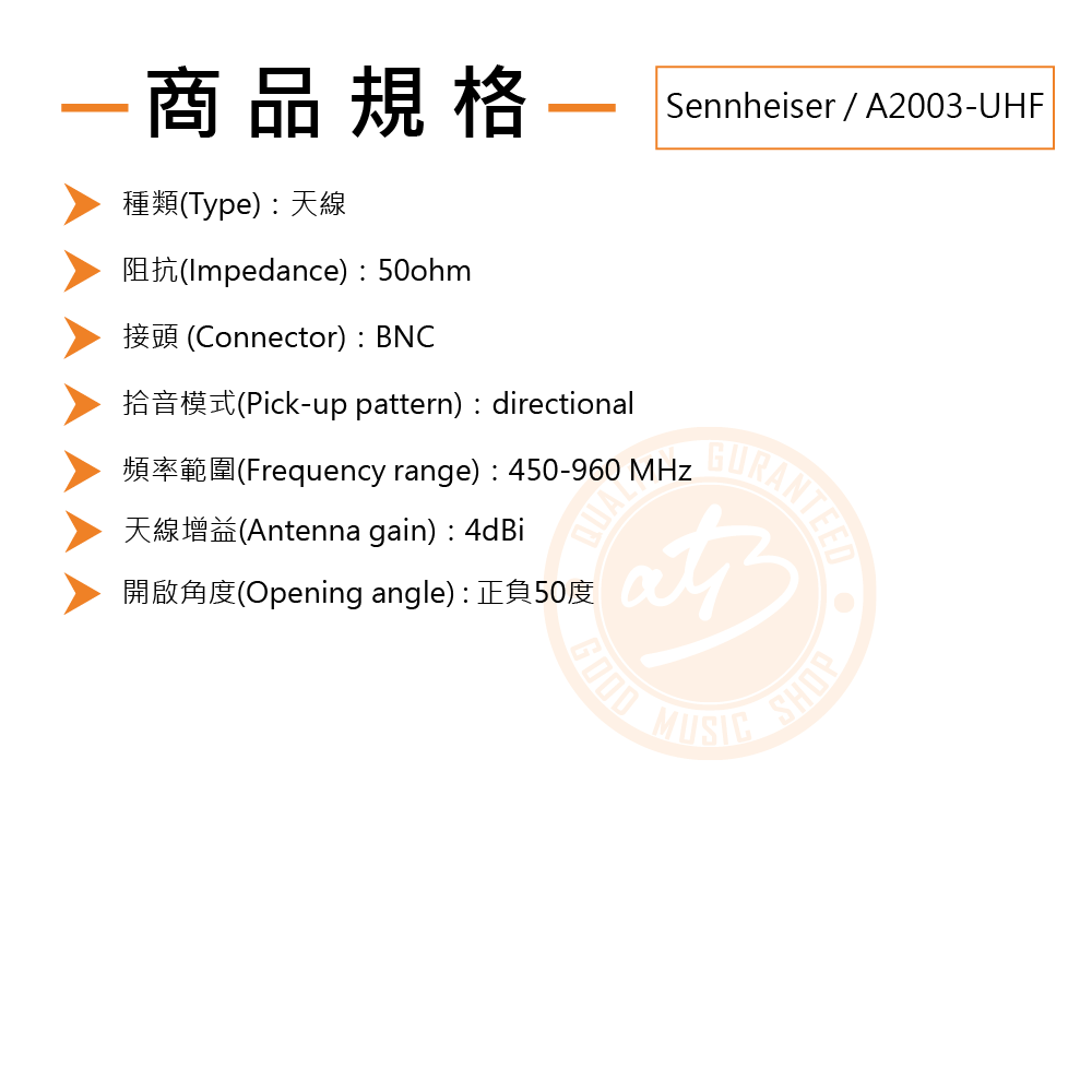 ◆ 頻率範圍450 - 960MHz,前後比≧14 dB
