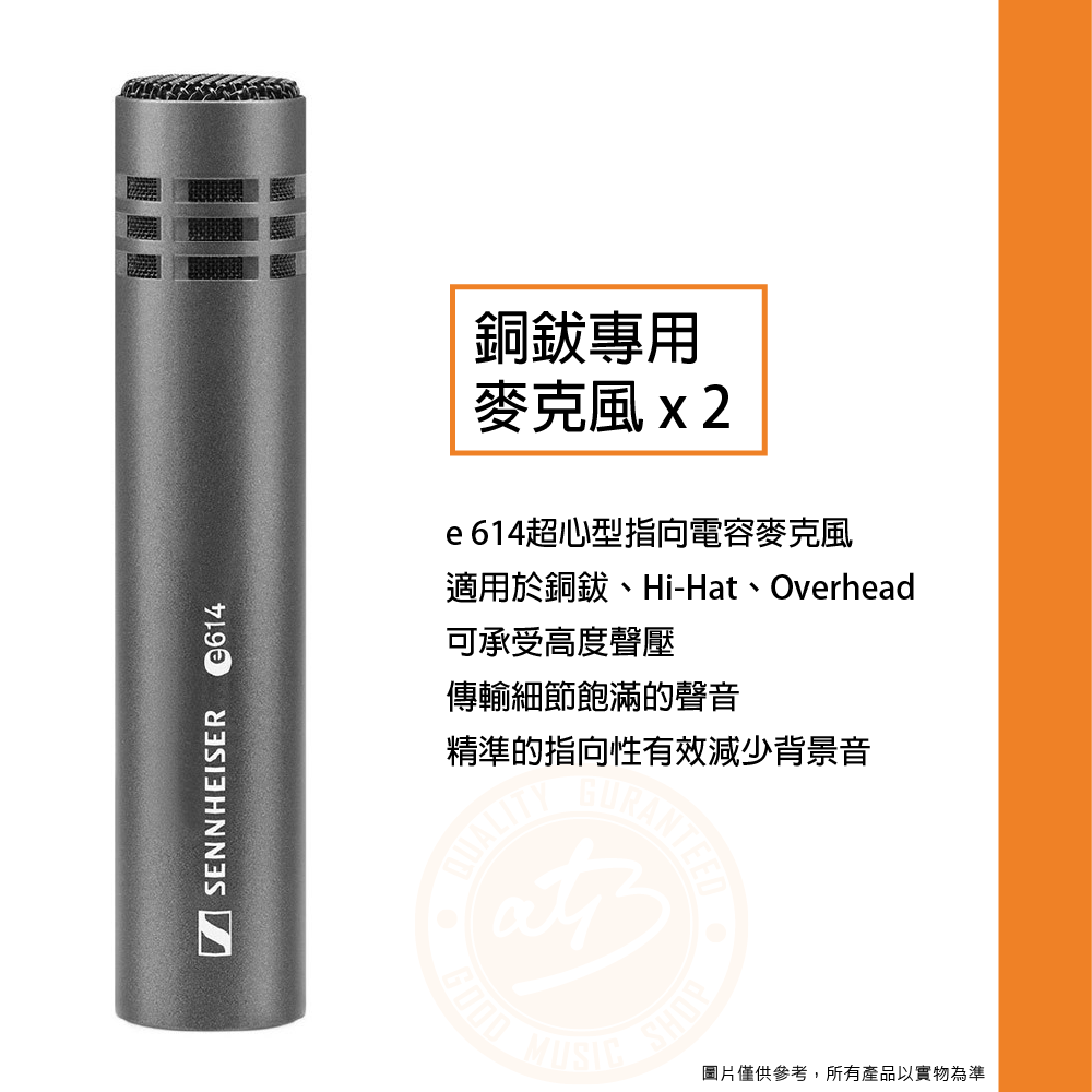 ◆ e 614超心型指向電容麥克風適用於銅鈸、Hi-Hat、Overhead,精準的指向性有效減少背景音