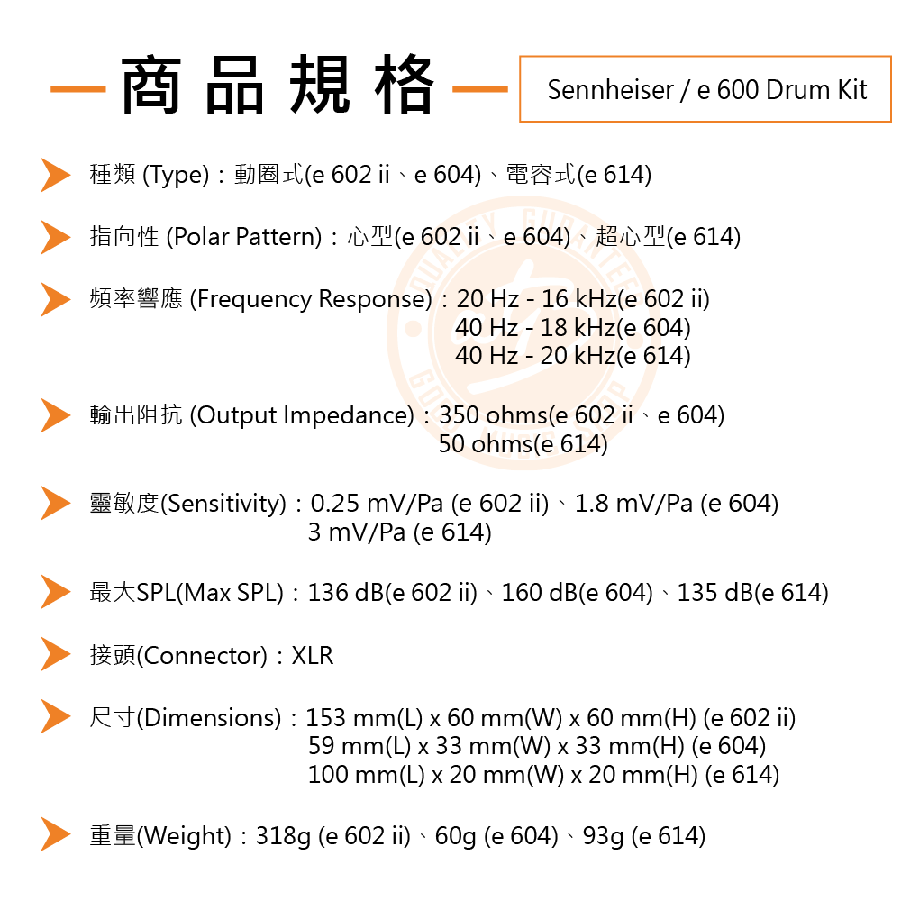 ◆ e 602 II大鼓專用動圈麥克風,精準顯現低音細節,金屬機身堅固安裝方便快速