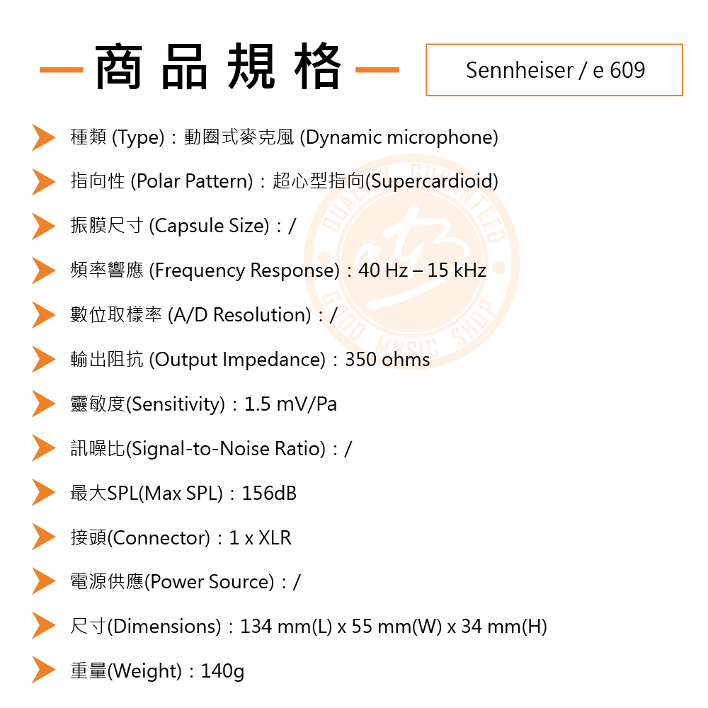 ◆ 動圈式超心型指向麥克風,專門為吉他音箱及近距離拾音信號所設計