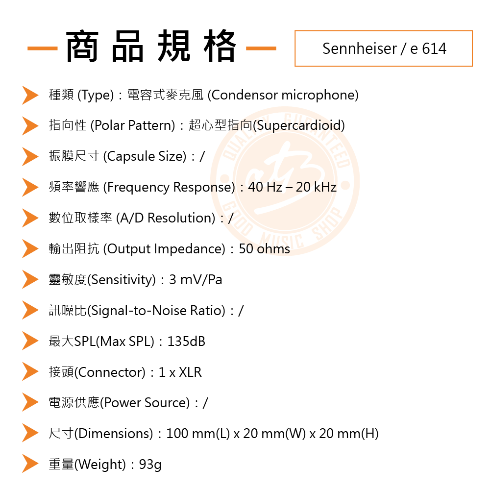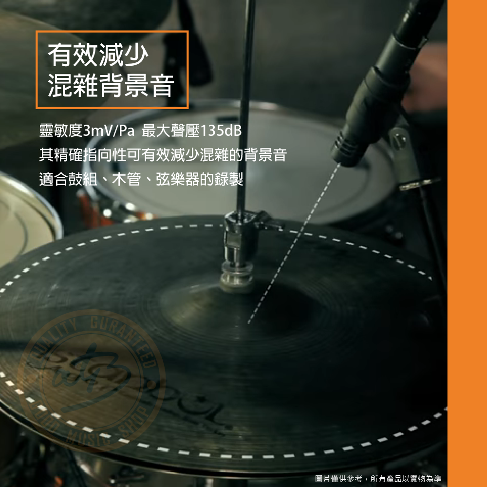 ◆ 精確指向性可有效減少混雜的背景音,適合鼓組、木管、弦樂器的錄製