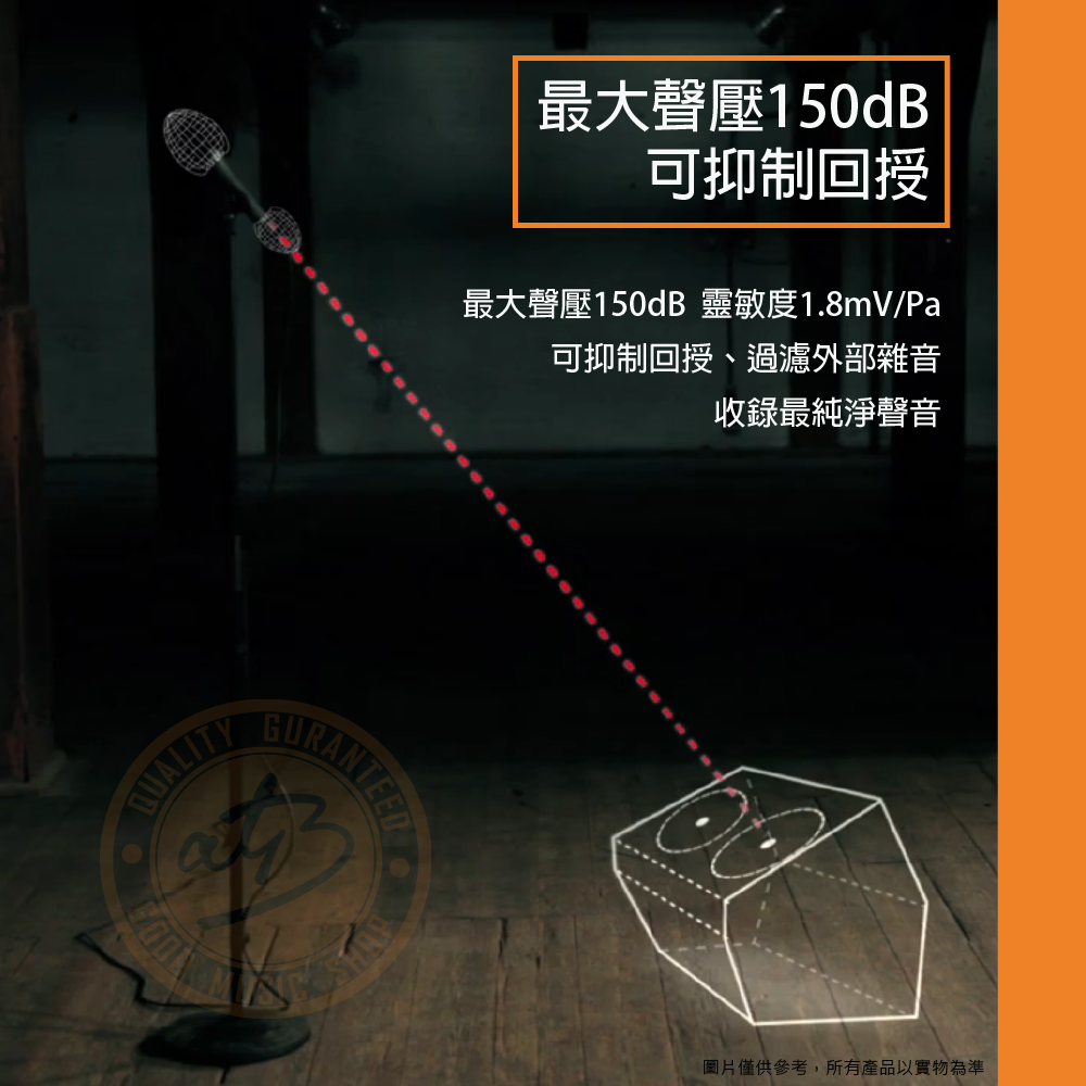◆ 超心型指向性,頻率響應40 – 16kHz,可抑制回授、過濾外部雜音