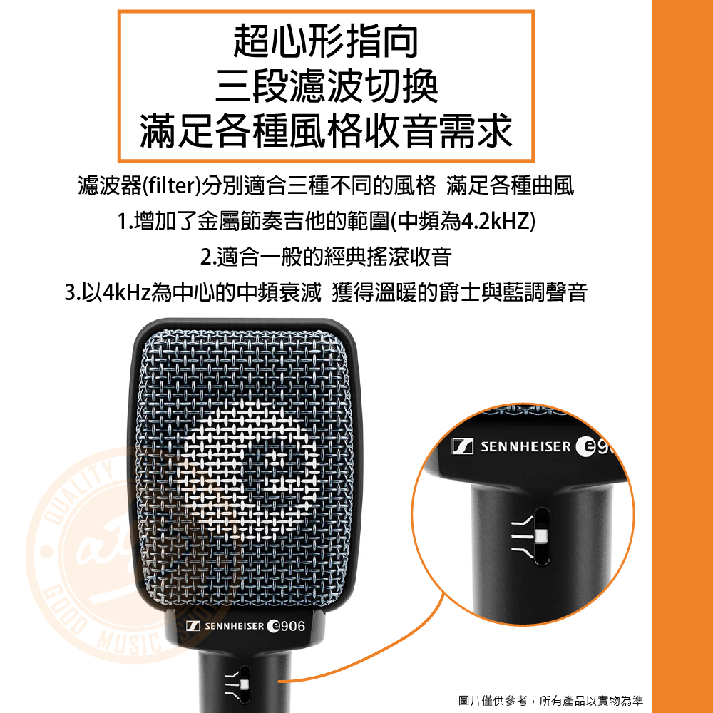 ◆ 超心形指向,三段濾波切換,可滿足各種風格收音需求