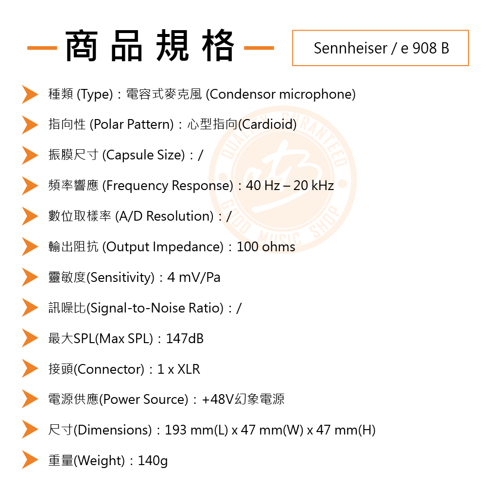 ◆ 心型指向電容式鵝頸麥克風,頻率響應40Hz – 20kHz